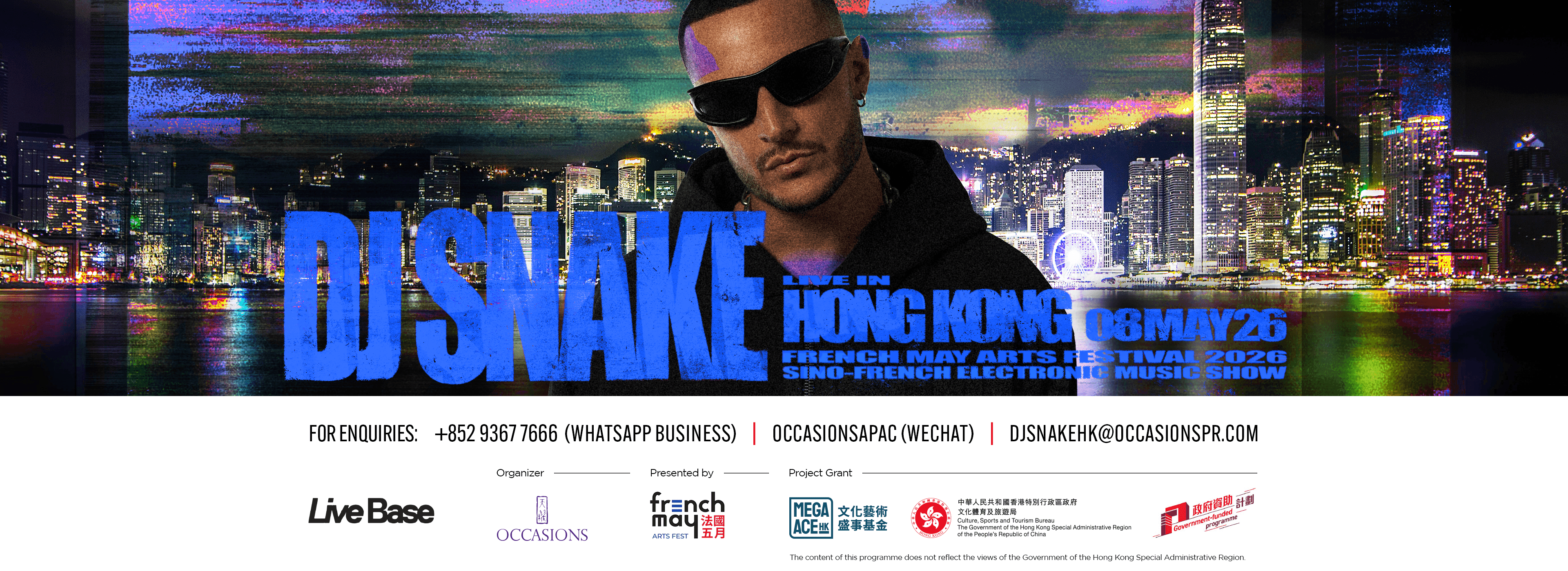 Electronic Music Show,邀請到全球巨星 DJ Snake,於2026年5月8日舉行大型露天音樂會。法國五月藝術節2026亦為香港特別行政區政府文化體育及旅遊局轄下「文化藝術盛事基金」的資助項目。