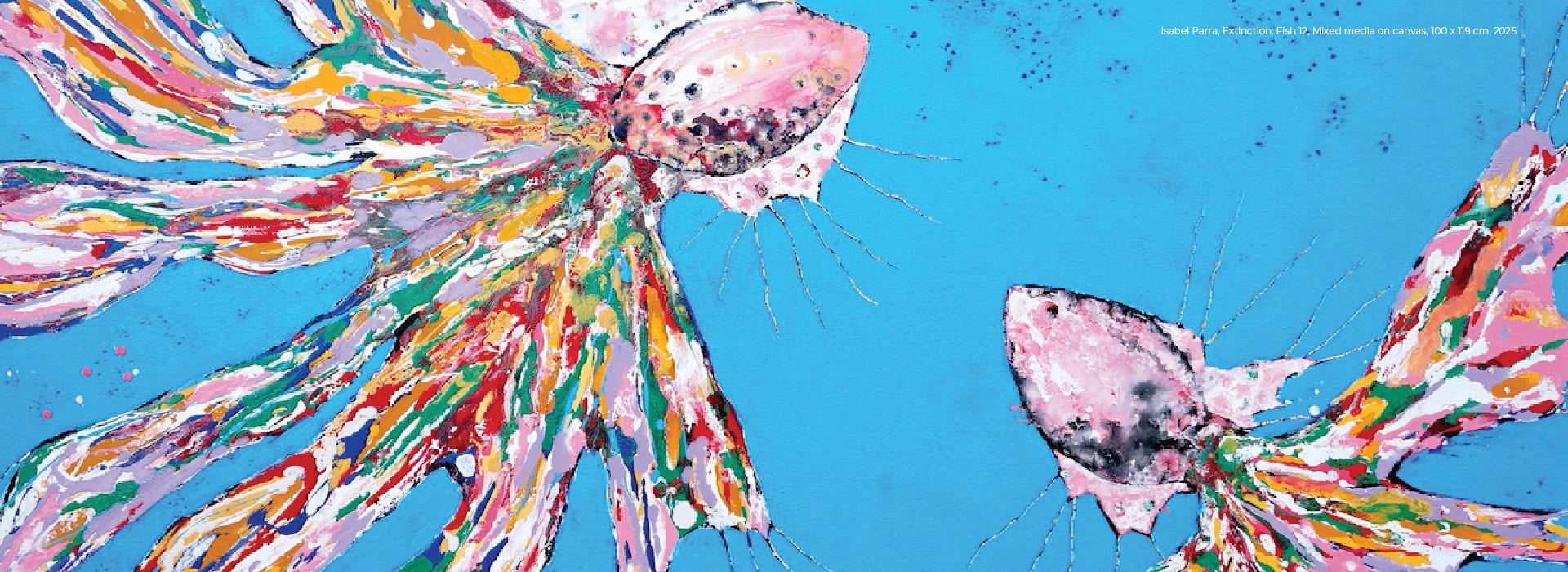 Isabel Parra 是居於香港的哥倫比亞法國籍藝術家,她在藝術創作與教學之間取得平衡。她的創作探討自然、文化與社會等多重力量如何形塑個體的身份與存在。《8》象徵循環、連結與共在,審視人類在 眾多物種之間的身份,游移於共生與消逝之間。Parra 的作品映照出傳統與現代的交匯,並邀請觀者思考共存與人性的意義。